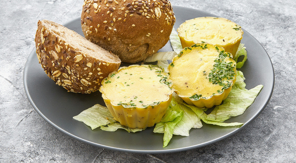 Naše vajíčkové muffiny se zeleninou a pohankovou bulkou. V tomto odkazu najdete kompletní FitMeal jídelníček.